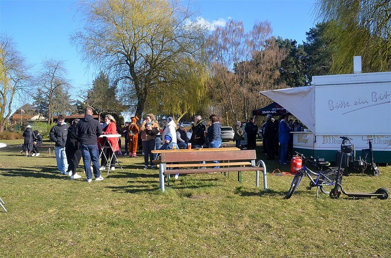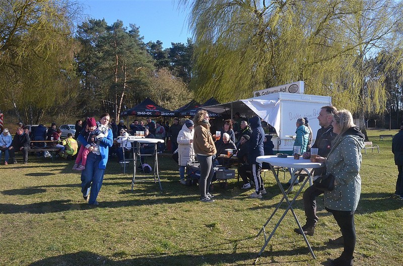 Riesige Baumstammscheiben waren eine gute Grundlage für ein tolles Osterfeuer am Barniner See. An den Versorgungsständen gab für jeden etwas passendes von Crepes, Bratwurst bis Pommes auch die verschiedensten Getänke für Groß und Klein. Das Ganze war sehr gut besucht. Höhepunkt für die Kiddis war natürlich als der Osterhase zum Suchen der Osterüberraschungen einwies. Dann schwärmten die Kinder aus und manch ein Erwachsender gab den kleinen auch Suchhinweise. So hatte letztendlich jeder glücklich ein Überraschungstütchen in der Hand.